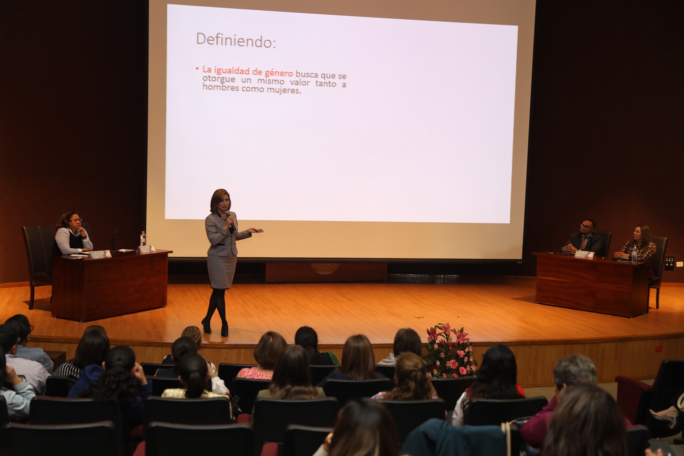 La Doctora Verónica Ramírez Huerta, expuso el tema “La Mujer y el rol en la educación”, destacando las múltiples labores desempeñadas por las mujeres en el ámbito público y privado; de igual manera, la Doctora Angélica García Avilés, participó con la ponencia “Bioética y Mujer”, con un razonamiento filosófico a partir de la historia de la inclusión de las mujeres en la esfera social y distinguiendo los parámetros de sexo y género, igualdad y equidad.
