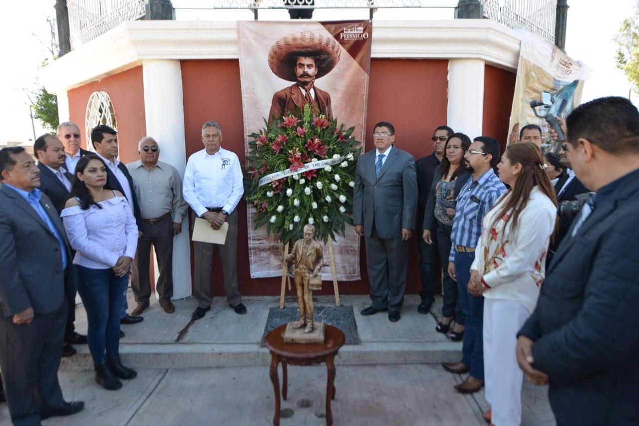 A cien años de la muerte del forjador del lema “la tierra es de quien la trabaja”, el Ayuntamiento de Fresnillo rindió homenaje al Caudillo del Sur y ahí en la plazuela de la colonia Emiliano Zapata Saúl Monreal Ávila exhortó a la niñez y juventud, al igual que a la sociedad, a trabajar unidos, porque “es lo fundamental para tener una sociedad digna con principios y valores”.