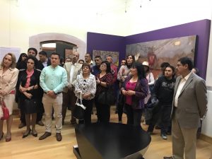 La inauguración de Desiertosmares estuvo a cargo del director del Instituto Zacatecano de Cultura (IZC) “Ramón López Velarde”, Alfonso Vázquez Sosa, quien estuvo acompañado de la artista, de la directora del Museo Zacatecano, Julieta Medina, y Argelia Estrada Lazarín, directora del Sistema Estatal de Museos.