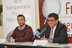 Fresnillo, Zac.- Luego de informar al alcalde Saúl Monreal Ávila de la entrevista que tuvo con el presidente del Instituto Nacional de Acceso a la Información (INAI), Francisco Javier Acuña Llamas, Ricardo Flores Pereyra anunció en la conferencia de prensa de la visita del Presidente Acuña Llamas y de la visita que hará al municipio la Caravana de la Transparencia.