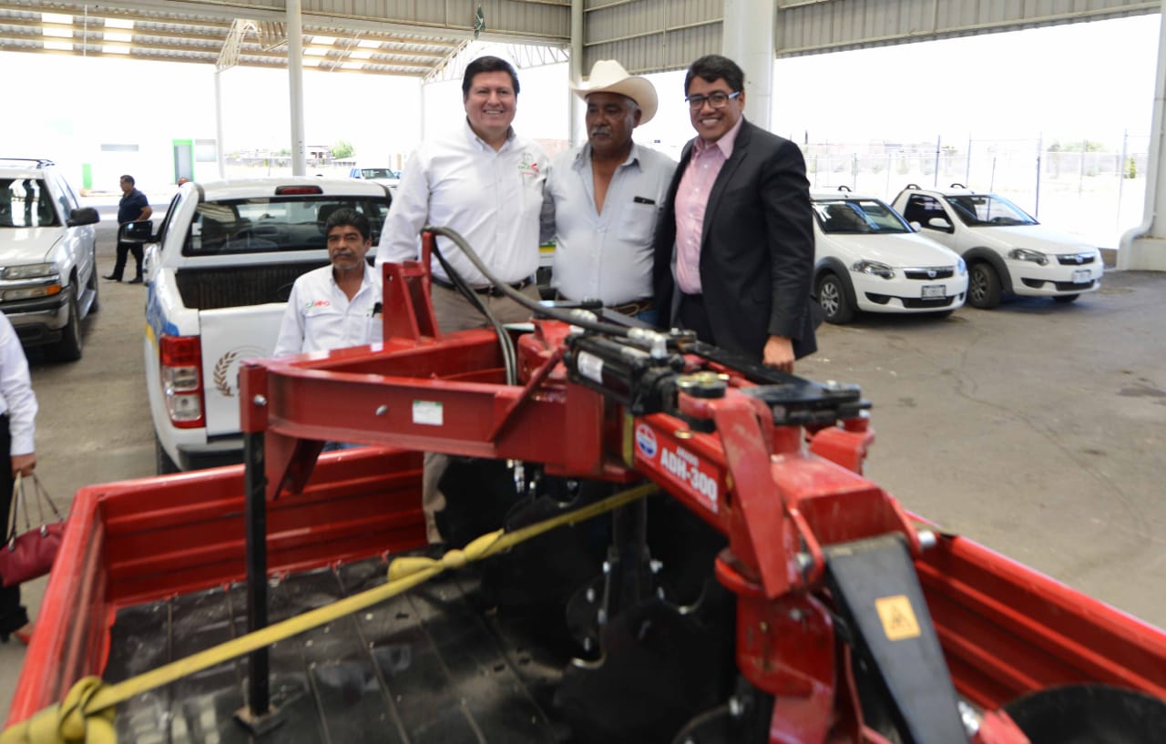 El Alcalde y el Secretario del campo, entregaron también los equipos, de desvaradora, remolque, 31 juegos de llantas para tractor, 5 molinos, 3 rastras de 20 discos, 12 remolques cama baja y 1 subsuelo, ello, a las comunidades del Mezquite San José de Lourdes, Redención, Plan de Vallecitos, Cabrales, Milpillas de la Sierra, por mencionar algunas comunidades.
