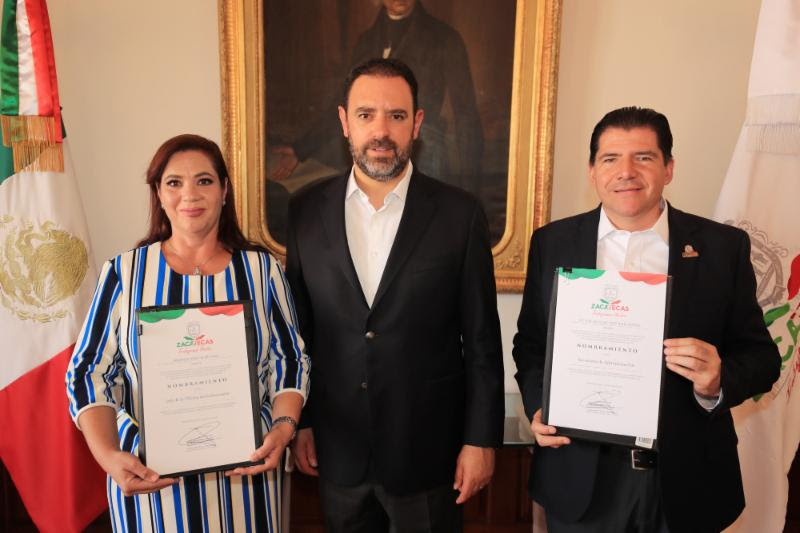 El Gobernador Alejandro Tello renovó su administración interna al tomar protesta a Arminda Díaz Martínez como Jefa de Oficina del Ejecutivo de Zacatecas, y a Víctor Rentería López, en la función de Secretario de Administración.
