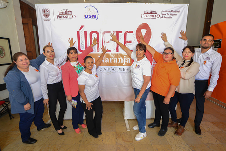 Fresnillo, Zac.- El Instituto Municipal para las Mujeres de Fresnillo (INMUFRE) en coordinación con la Universidad Sierra Madre (USM), realizaron actividades para celebrar la erradicación de la violencia en contra de mujeres y niñas con el día naranja, en el ex Templo de la Concepción.