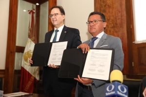 Con el propósito de establecer las bases para equipar una sala para la celebración de audiencias en materia mercantil en el Distrito Judicial de la Capital, mediante mobiliario y tecnología para el registro de audio y video, el Tribunal Superior de Justicia del Estado de Zacatecas (TSJEZ) por conducto del Magistrado Presidente, Armando Ávalos Arellano y la Secretaría de Economía del Gobierno del Estado (SEZAC) por medio de su titular, el Ingeniero Carlos Bárcena Pous celebraron un convenio de colaboración.