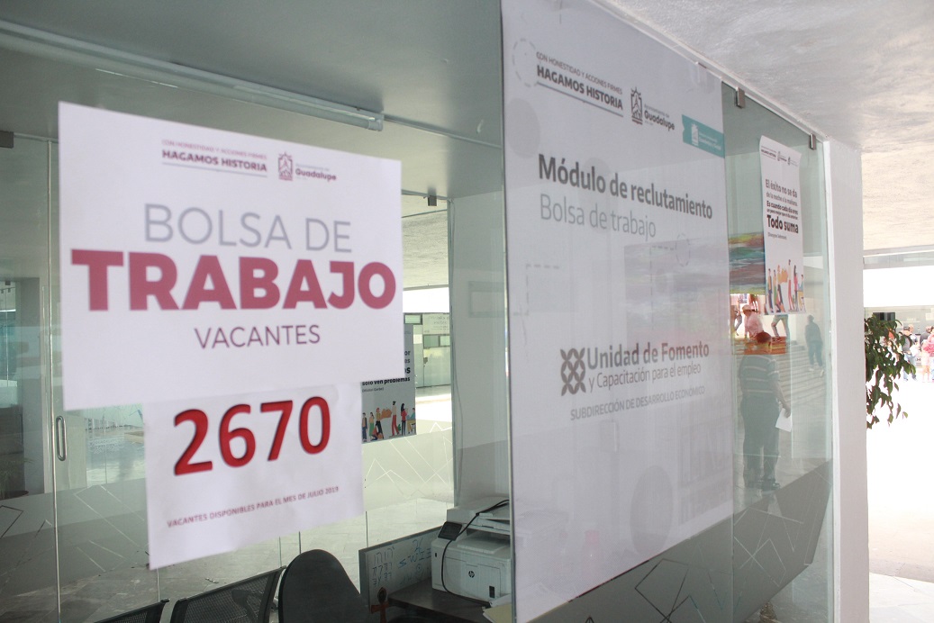 A través de la Unidad de Fomento y Capacitación para el Empleo de la Subdirección de Desarrollo Económico, actualmente se ofertan 2 mil 670 vacantes en diferentes empresas del municipio, y es por indicación del presidente municipal de Guadalupe, Julio César Chávez, que se pone al alcance de la gente que busca emplearse, la información necesaria para que ocupe alguna plaza de trabajo disponible.