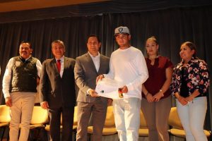 A nombre de los 233 beneficiarios, el joven José Manuel Jiménez agradeció al Gobernador Alejandro Tello el apoyo económico que le permitirá emprender un negocio.