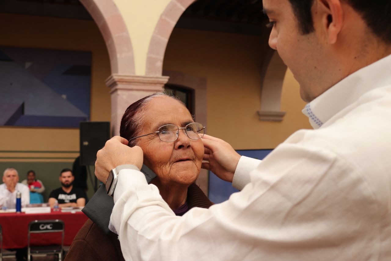 En la audiencia pública número 38 de 140 programadas a realizarse durante la gestión del primer edil de la capital, Ulises Mejía Haro entregó apoyos a personas con deficiencia visual a través del programa “Viendo con Amor”, mediante el cual se ha trabajado en coordinación con el Club de Leones para apoyar a mil 500 personas con la entrega de lentes, además de apoyar a cerca de 20 personas con la operación gratuita de cataratas y la entrega de 160 pares de anteojos a internos del Centro Regional de Readaptación Social (Cerereso) a través del mismo programa.