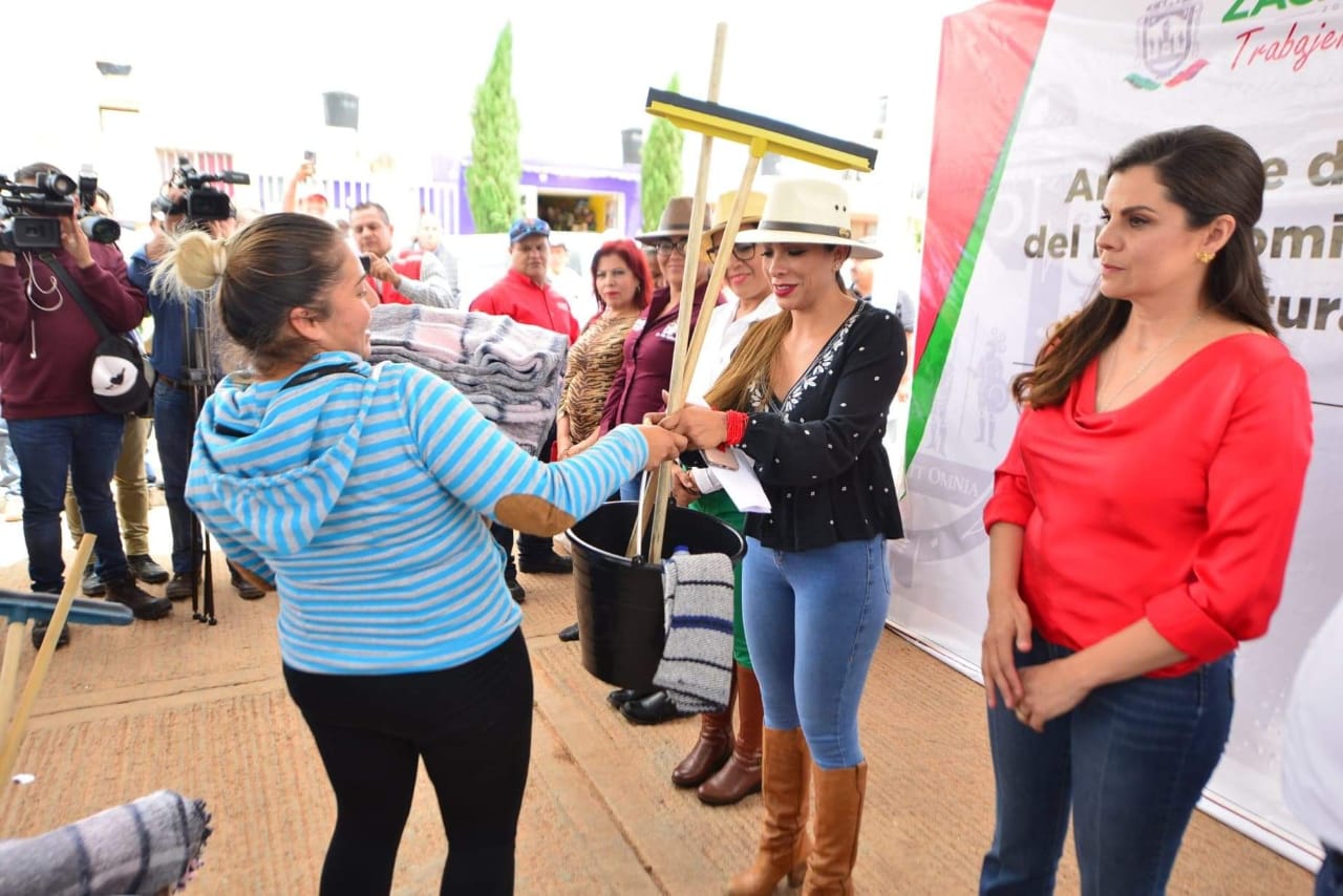 En Fresnillo, se entregaron 500 despensas, 100 cobijas, 100 colchonetas, 500 kits de limpieza y un rollo de hule. Cada familia recibirá 2 colchonetas, 1 despensa, 1 kit de limpieza y cobijas.