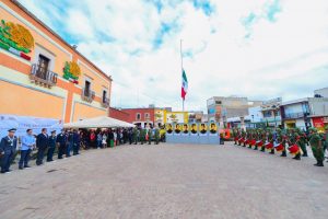 Fresnillo, Zac.- El Alcalde, Saúl Monreal Ávila, encabezó el acto cívico que se realizó en la plaza de la Presidencia Municipal para conmemorar el CLXXII aniversario de la Gesta Heroica del Castillo de Chapultepec, donde se recordó a los Niños Héroes que entregaron su vida por la patria.