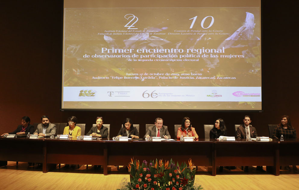 De manera conjunta, el Instituto Electoral del Estado de Zacatecas, el Tribunal de Justicia Electoral del Estado de Zacatecas, la Secretaría de las Mujeres y el Observatorio de Participación Política de las Mujeres en Zacatecas organizaron el Primer Encuentro Regional de Observatorios de Participación Política de las Mujeres de la Segunda Circunscripción, con la participación de representantes de los Observatorios de los Estados de Nuevo León, San Luis Potosí, Querétaro, Tamaulipas, Guanajuato, Aguascalientes y Zacatecas.