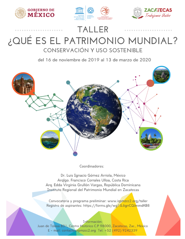 Con el objetivo de impulsarla conservación y fomento del Patrimonio entre los sectores educativos, sociales e institucionales, el Instituto Regional de Patrimonio Mundial en Zacatecas, Centro Categoría II auspiciado por la UNESCO, invita a los interesados a participar en el taller ¿Qué es el Patrimonio Mundial? Conservación y Uso Sostenible.