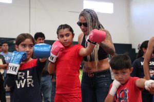 Fresnillo, Zac.- Para el Presidente Municipal, Saúl Monreal Ávila es prioridad acercar a los jóvenes a las actividades deportivas, por ello, cientos de jóvenes fresnillenses participaron en la Clínica de box, impartida por la campeona en peso gallo, Mariana “La Barby” Juárez en el gimnasio municipal “Antonio Méndez Sosa.”