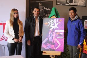 Para finalizar, Adolfo Márquez Vera, junto al coordinador general de la carrera, y Chantal Candelas, modelo utilizada para darle vida al poster, develaron el cartel oficial de esta carrera atlética 5k denominada “Ánimas a Correr”, con verificativo el domingo 3 de noviembre en punto de las 9 horas.