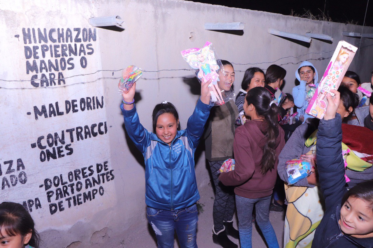 Niños, jóvenes y adultos se concentraron en una de las calles principales de la comunidad de Pocitos para recibir un regalo y los parabienes que como mensaje les llevó el mandatario municipal.