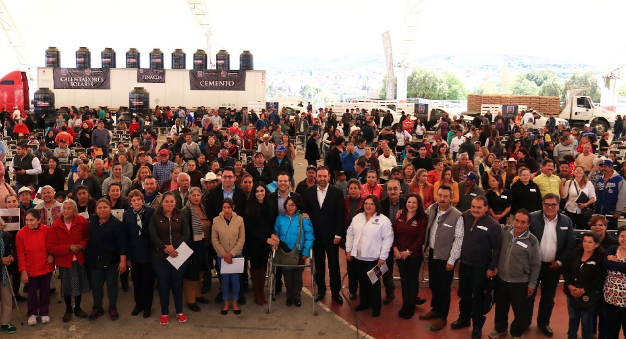 Durante la entrega de apoyos, que consistieron en más de 180 toneladas de bultos de cemento, más de 100 paquetes de láminas, cerca de 125 tinacos y 500 calentadores solares, Ulises Mejía Haro explicó que con este programa se da respuesta a las solicitudes de la ciudadanía que acudió a alguna de las 52 audiencias públicas realizadas en esta administración y que por las reglas de operación no pudieron ser beneficiadas con otros programas.