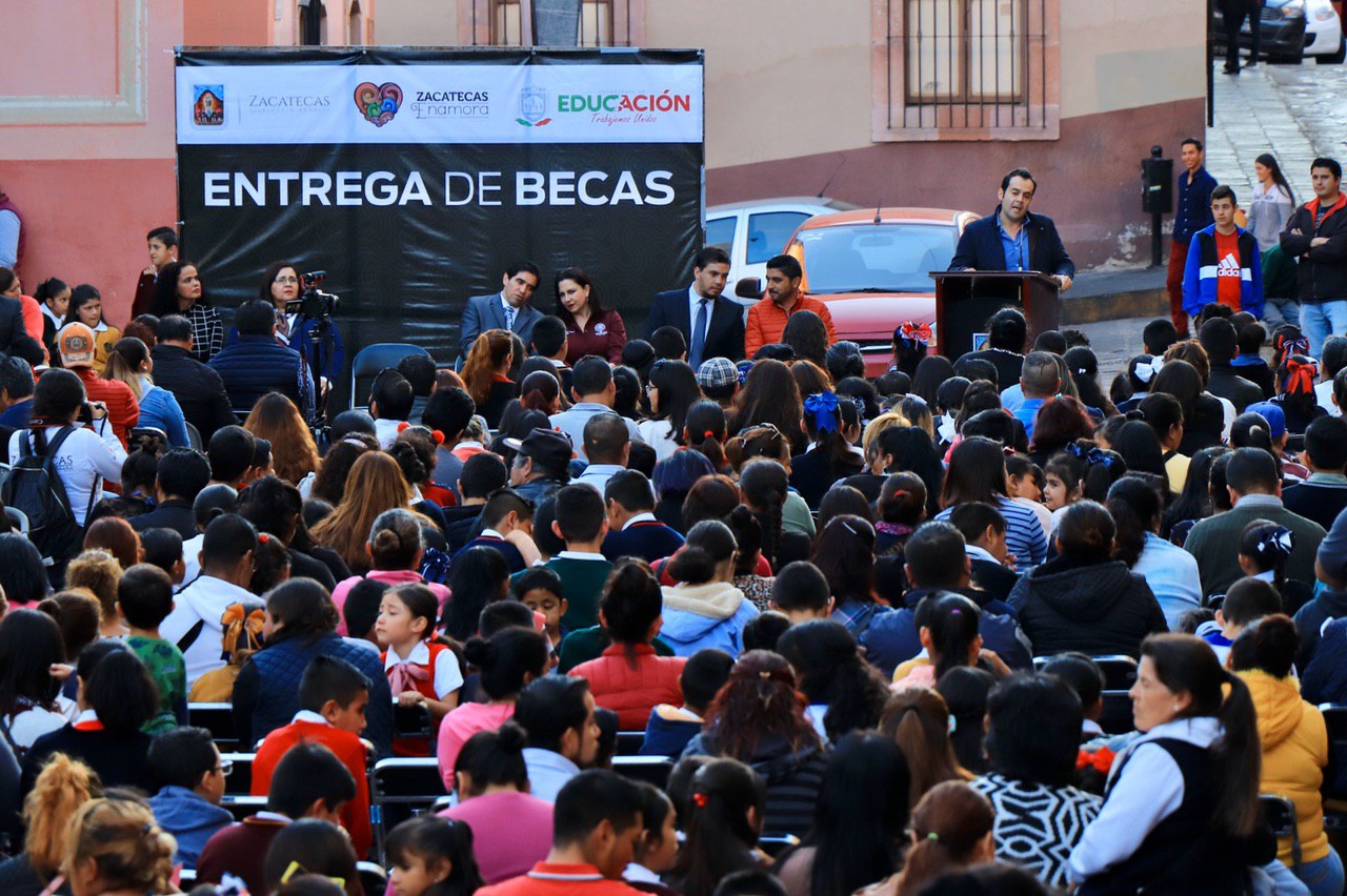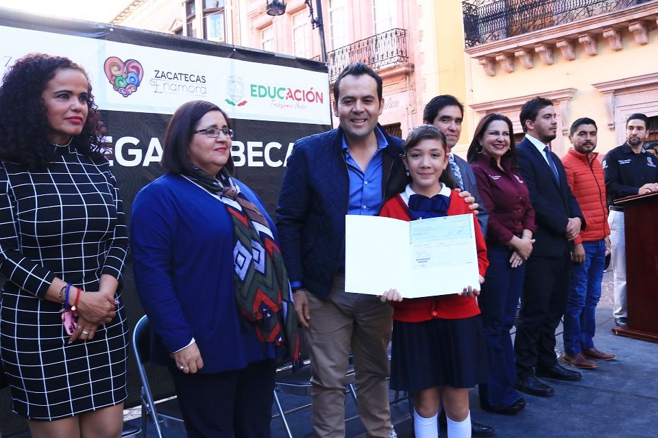 Comprometido con la educación y el futuro de niños y jóvenes de la Joya de la Corona, el alcalde capitalino Ulises Mejía Haro entregó un total de 466 becas escolares a 75 de las 83 escuelas públicas de nivel primaria y secundaria con una inversión superior al medio millón de pesos, en convenio con la Secretaría de Educación de Zacatecas (SEDUZAC) y otra parte con recursos propios del municipio, “porque el trabajo honesto y coordinado para la educación por la gran esperanza que son los niños y jóvenes de esta ciudad todo lo vence”.