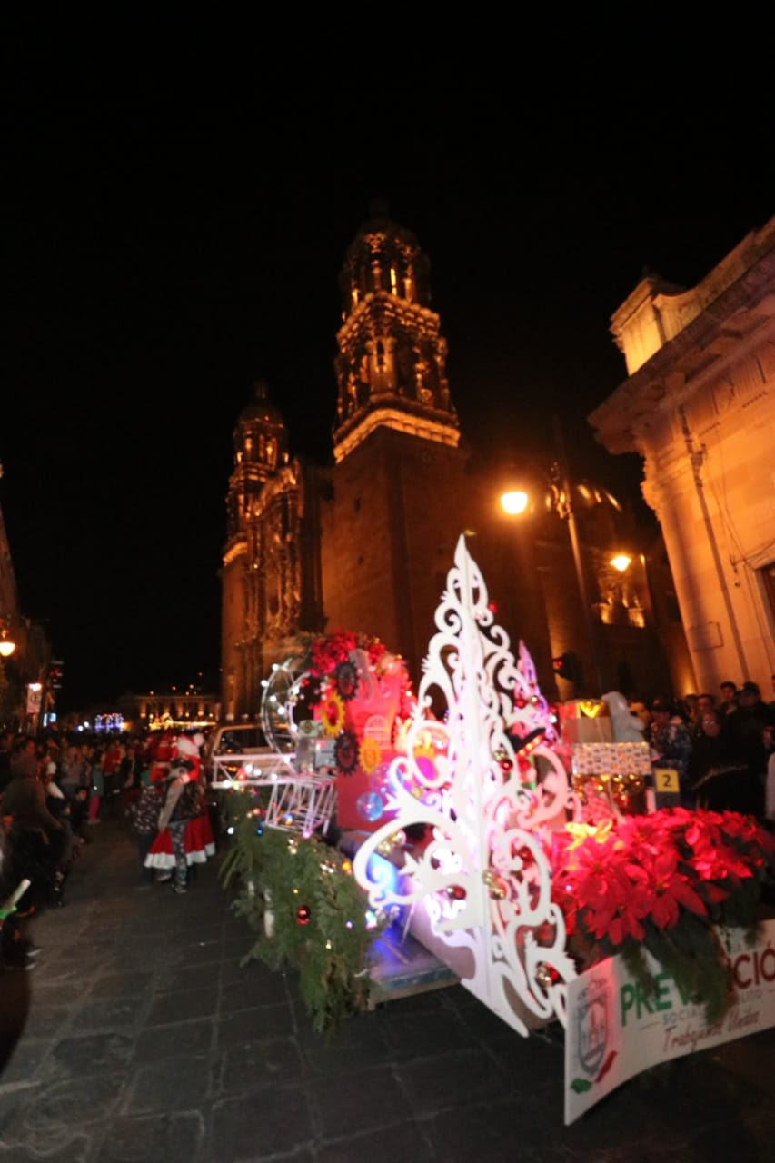 Miles de personas que se dieron cita al centro histórico de la capital disfrutaron del espectacular desfile navideño, en su edición 2019, en el que participaron 17 carros alegóricos, la Banda Sinfónica del Estado y varios contingentes de personajes navideños.