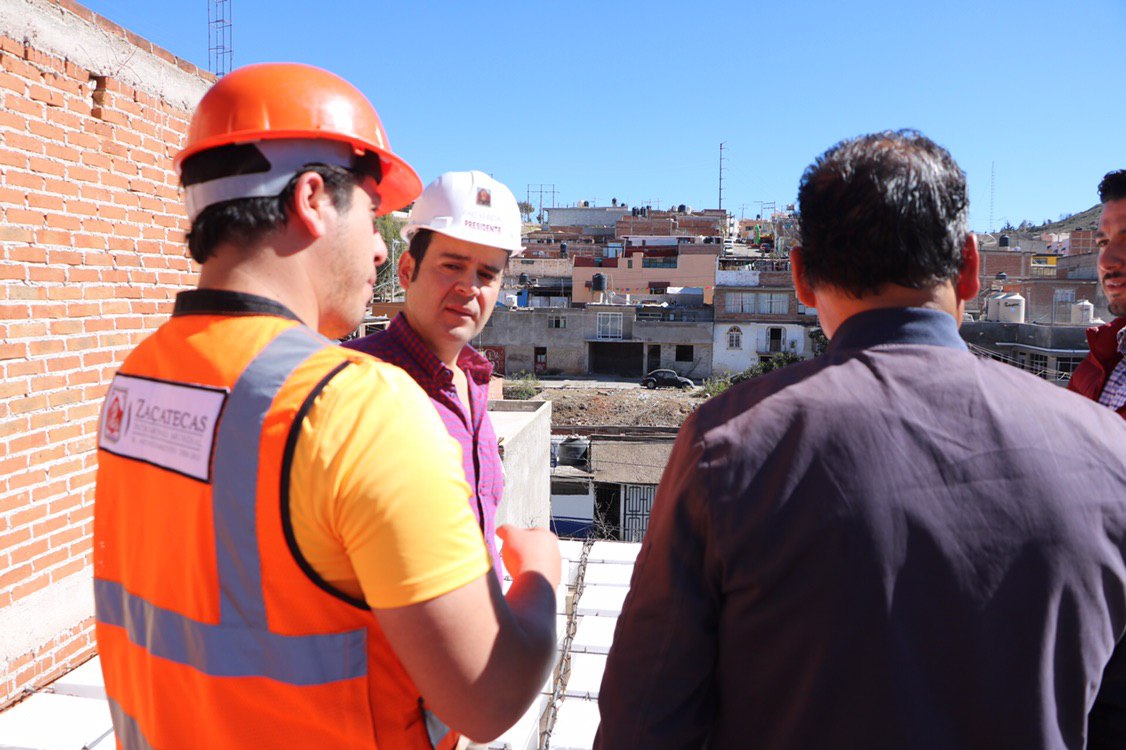 Como parte de las obras que se realizan al cierre de este 2019 en Zacatecas Capital, el alcalde Ulises Mejía Haro supervisó la construcción de techos firmes en las colonias Benito Juárez y González Ortega donde se invierten cerca de 1.5 millones de pesos de recurso municipal para beneficiar a las familias de este polígono.