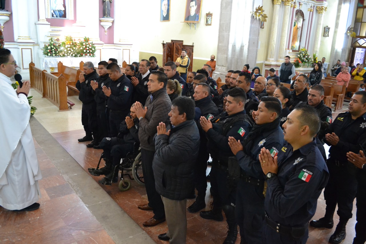En el patio de la nueva comandancia se llevó a cabo un desayuno con los elementos de seguridad pública del municipio para reconocer su labor en el marco del “Día del Policía”, el cual comenzó con la celebración de una misa en acción de gracias.