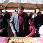 Fresnillo, Zac.- En la explanada de la Presidencia Municipal, se realizó la tradicional partida de Rosca de Reyes a cargo del Alcalde, Saúl Monreal Ávila, como parte de las actividades que iniciaron en diciembre para el fomento de las tradiciones en El Mineral.