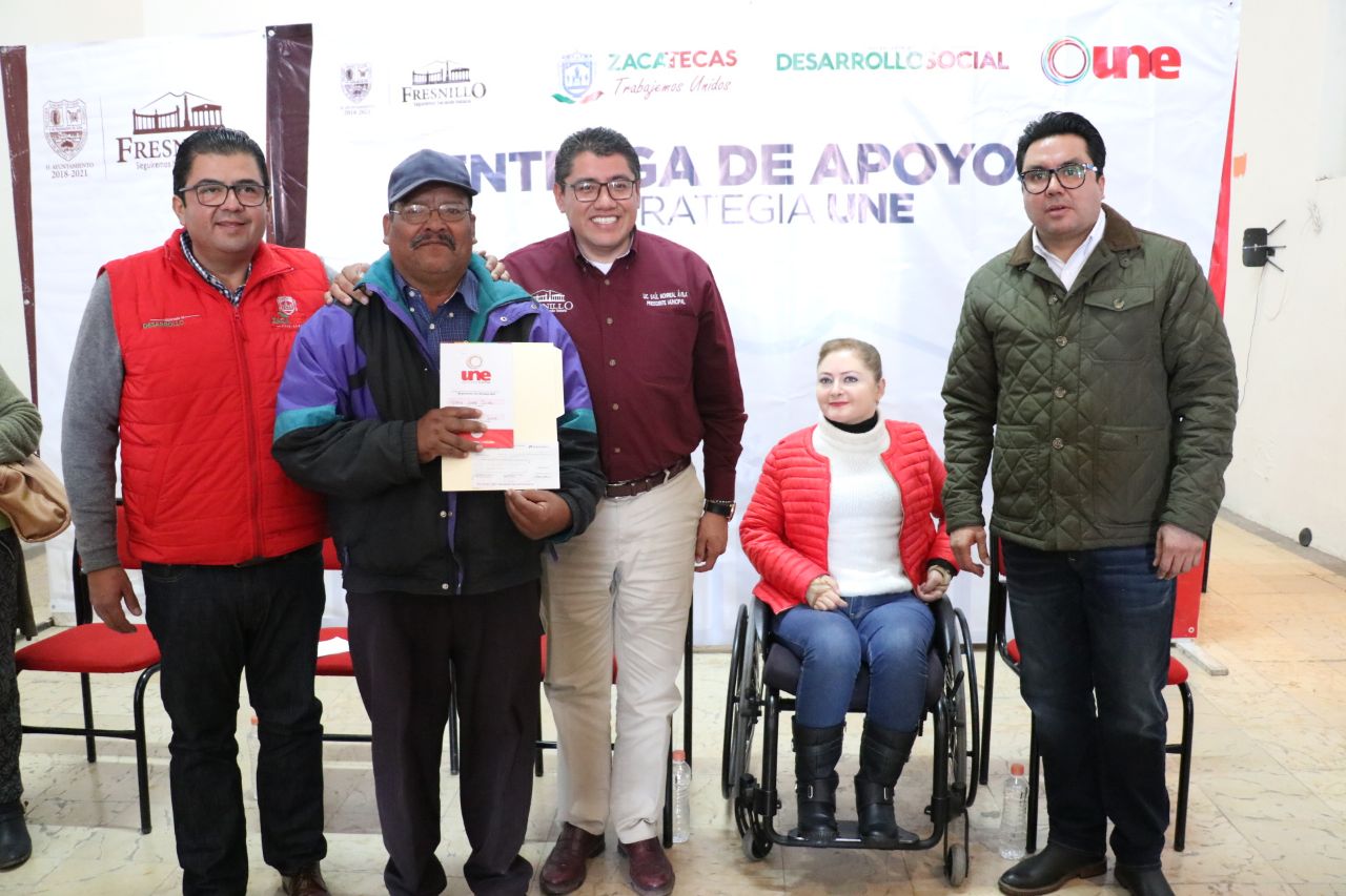 Fresnillo, Zac.- La Secretaría de Desarrollo Social de gobierno del Estado, en conjunto con el Gobierno Municipal hicieron entrega de la beca De la Mano Contigo, bajo el programa UNE que tiene como finalidad apoyar a los cuidadores de personas con discapacidad.