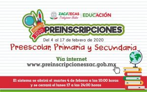 Para realizar el trámite, los padres de familia deberán ingresar al portal de Internet: https://preinscripcioneszac.gob.mx, que se habilitará el 4 de febrero, a las 10 de la mañana.