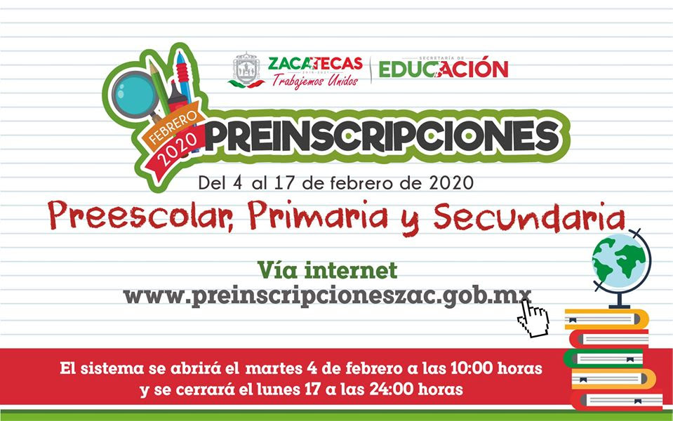 El Gobierno del Estado informa que el próximo martes 4 de febrero inicia el proceso de preinscripciones para el ingreso a preescolar, primaria y secundaria, el cual concluirá el día 17 del mismo mes.