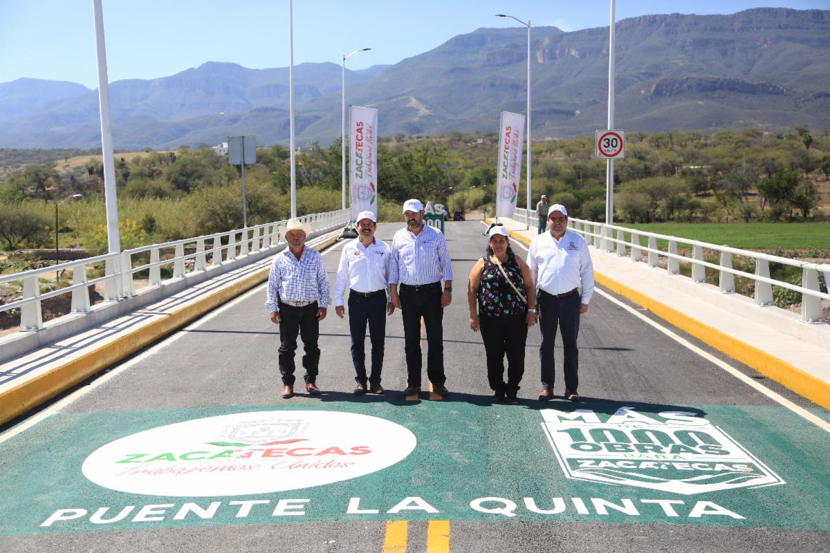 Con una inversión de aproximadamente 20 millones de pesos, Alejandro Tello cumplió al pueblo de Juchipila y de la región con la construcción del Puente La Quinta, que da conectividad a las localidades Pueblo Viejo, La Rinconada, Guadalupe Victoria, San José, La Cantera, Bonifacio Falcón, así como los fraccionamientos Juchipila y Magisterial.