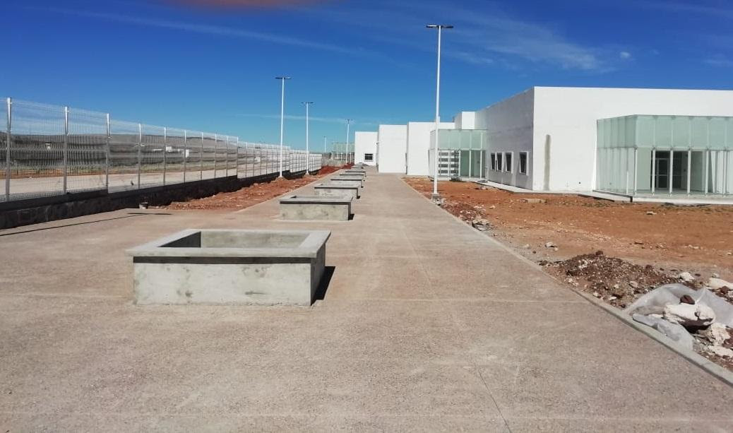 Fresnillo, Zac.- Personal de la Secretaria de Obras Públicas del Gobierno de Zacatecas trabaja en la última etapa de la construcción del Hospital de la Mujer en Fresnillo, que consiste en obras complementarias como las plataformas de estacionamiento y accesos.