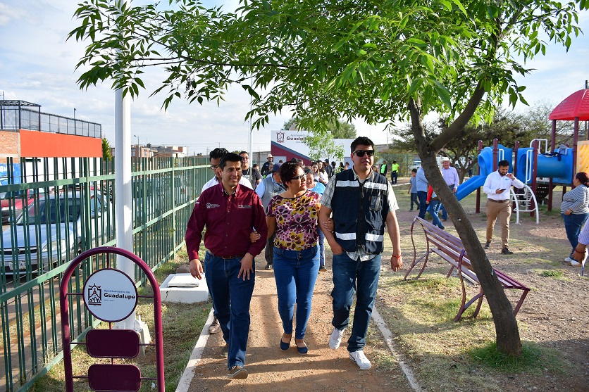 Con la firme convicción de cumplirles a los guadalupenses y procurar el desarrollo integral de la ciudadanía en general, el presidente municipal Julio César Chávez Padilla, entregó la rehabilitación del salón de usos múltiples, la cancha y el parque La Martinica, esto en la colonia Ferrocarrileros.