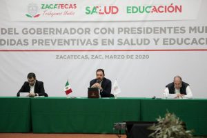El Gobernador Alejandro Tello se reunió con las y los alcaldes de los 58 ayuntamientos del estado, con el fin de impartir una serie de protocolos sanitarios para mitigar la eventual propagación del COVID-19, en caso de que éste tenga presencia en Zacatecas.