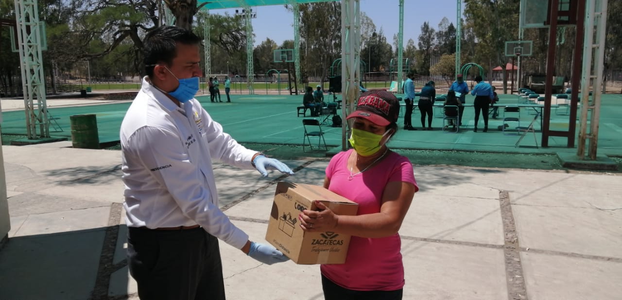 Villanueva, Zac.- La Unidad deportiva Domingo González, fue el escenario en el que el secretario de gobierno municipal, Salvador Nuñez, entregó a cien familias de Villanueva, igual número de despensas en apoyo a su economía familiar.