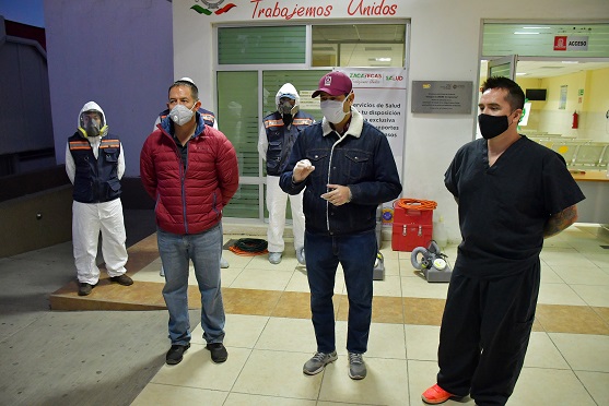 En tanto, agregó, “seguimos con la gratitud y el reconocimiento a la labor del personal médico y de enfermería, porque sus jornadas inician muy temprano y hacen guardias hasta muy tarde para cuidarnos”, dijo el alcalde previo a la sanitización de la Uneme-Covid.