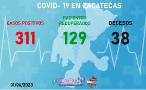 LLEGA ZACATECAS A 311 CASOS POSITIVOS DE COVID-19 AL CONFIRMAR HOY OTROS NUEVE Y DOS FALLECIMIENTOS