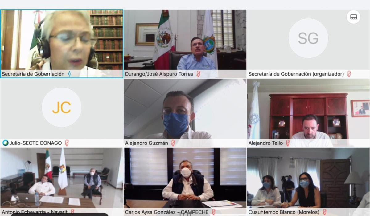 La reunión fue convocada por la Secretaria federal de Gobernación, Olga Sánchez Cordero, con el objetivo de diseñar, en conjunto con las y los mandatarios del país, el plan de reactivación de la economía de México, acorde a los indicadores del semáforo de contagios del coronavirus Covid-19.