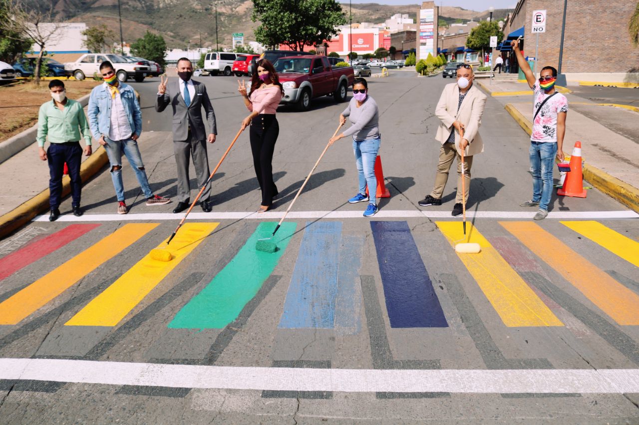 Como parte de las actividades conmemorativas por el mes del orgullo LGBTTTIQ+ en el municipio de Zacatecas y respetando los debidos protocolos de sanidad que derivan de la contingencia por el COVID-19, se llevó a cabo la pinta del paso peatonal sobre la Avenida García Salinas con los colores de la bandera que representa a este sector de la sociedad, y que ha sido utilizada como símbolo desde los años 70.