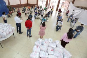Con respeto estricto a las medidas establecidas por las autoridades sanitarias, por la pandemia del Coronavirus, entregó las despensas acompañado por el Presidente Municipal, Carlos Antonio Carrillo Gómez, así como por Irene Medina y Karina Sandoval, Presidenta y Directora del SMDIF de este municipio, respectivamente.