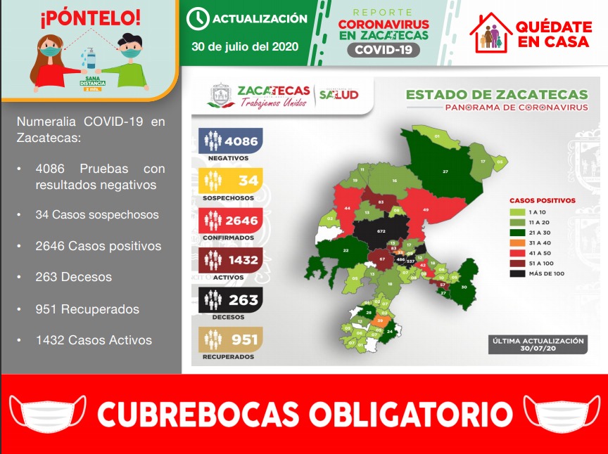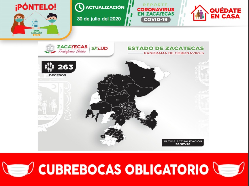 Durante este día, además, se confirmó que los fallecimientos de dos masculinos, uno de 79 años, originario de Vetagrande, y otro de 60 años, residente de Mazapil, se debieron a la enfermedad Covid-19; el primero de ellos perdió la vida el 19 de julio y el segundo, el 24 de julio.
