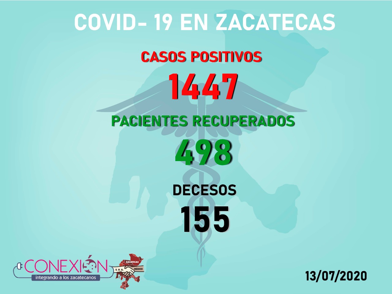 Zacatecas acumuló un total de 1447 casos positivos de Coronavirus (COVID-19, luego de registrar este día 41 nuevos contagios, de acuerdo con lo informado por Gilberto Breña Cantú, titular de la Secretaría de Salud estatal (SSZ).