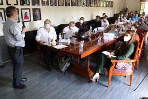 Villanueva, Zac.- En el salón de cabildo de esta Presidencia, se llevó a cabo la capacitación por parte de Arnulfo Joel Correa Chacón médico internista e infectólogo del estado de Zacatecas, quien fue invitado por el Presidente Municipal Miguel Torres Rosales, para impartir una charla a más de 25 médicos del municipio, para establecer las medidas que ayuden a tratar a los pacientes de COVID 19, sin que pongan en riesgo su vida.