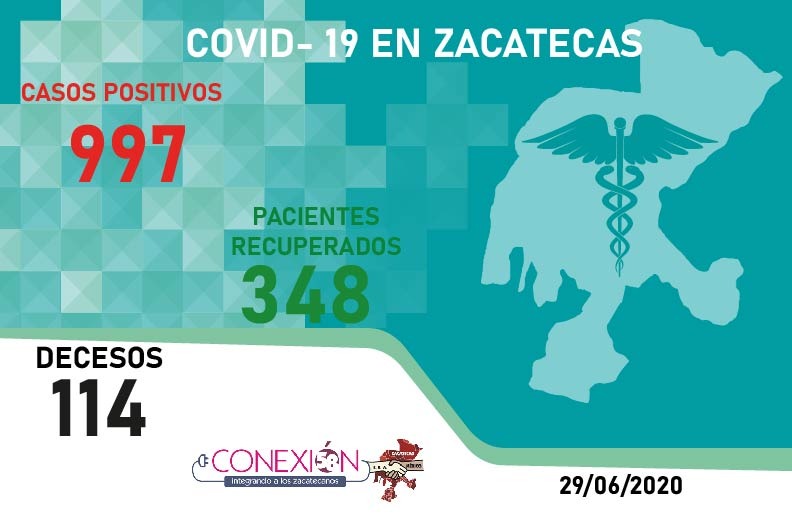 Este día, Zacatecas llegó a 997 casos positivos de Coronavirus (COVID-19) en total, al registrar 27 nuevos contagios, según lo informado por Gilberto Breña Cantú, titular de la Secretaría de Salud estatal (SSZ).