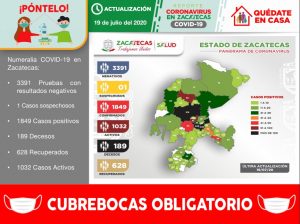 La Secretaría de Salud de Zacatecas (SSZ) registró, este domingo 19 de julio, a otros 36 pacientes recuperados clínicamente de Coronavirus (COVID-19), con los que suman ya 628 en la entidad.
