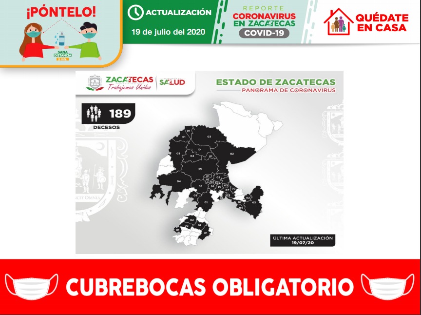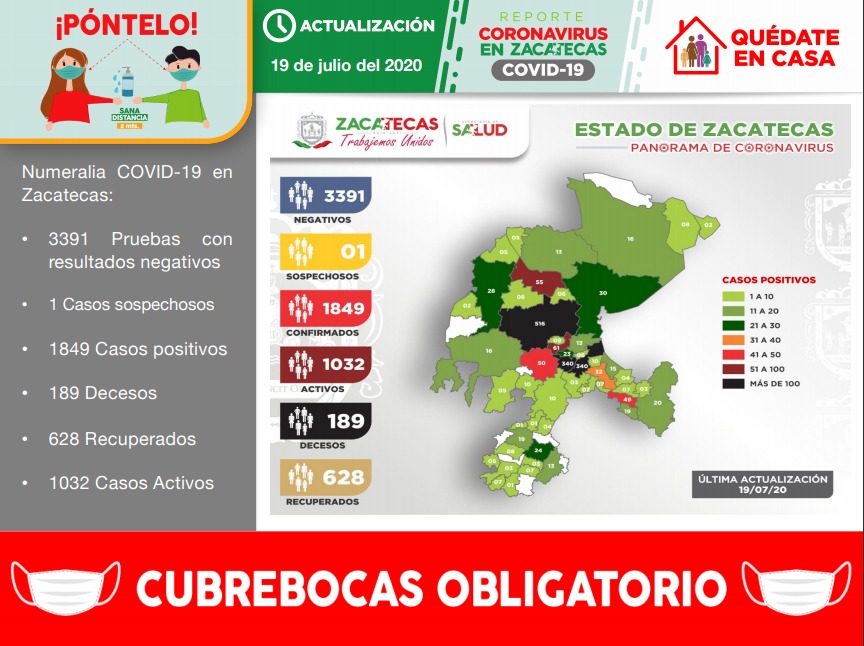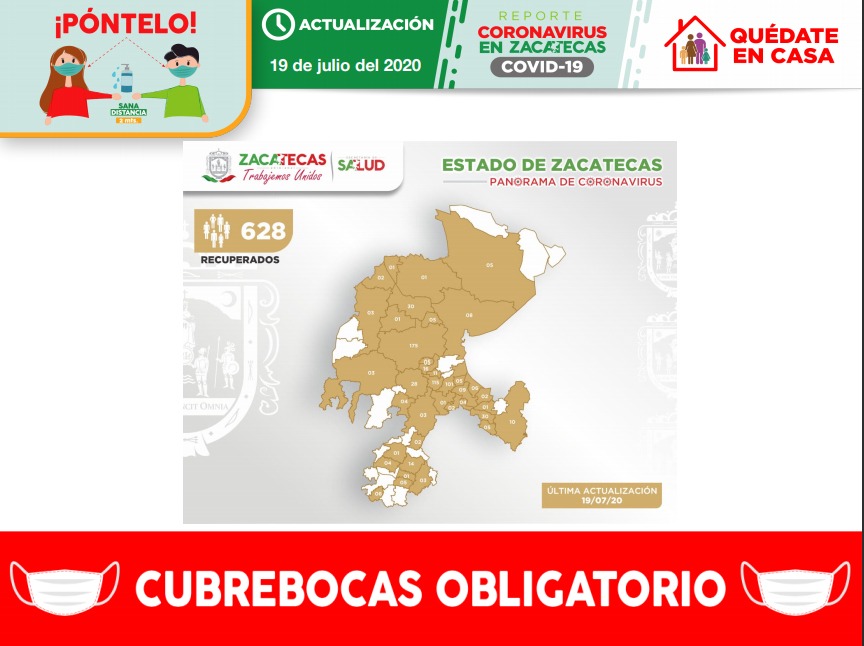 La Secretaría de Salud de Zacatecas (SSZ) registró, este domingo 19 de julio, a otros 36 pacientes recuperados clínicamente de Coronavirus (COVID-19), con los que suman ya 628 en la entidad.