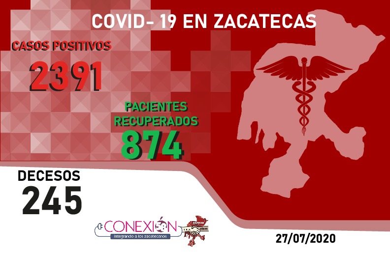 La Secretaría de Salud de Zacatecas (SSZ) registró, este lunes 27 de julio, a otros 42 pacientes recuperados clínicamente de Coronavirus (COVID-19), por lo que la cifra llegó a 874 en todo el territorio estatal.