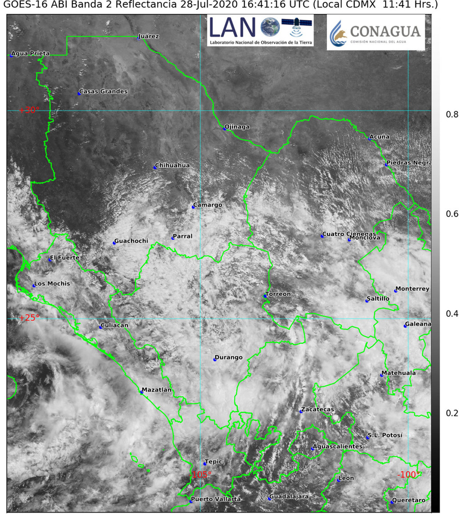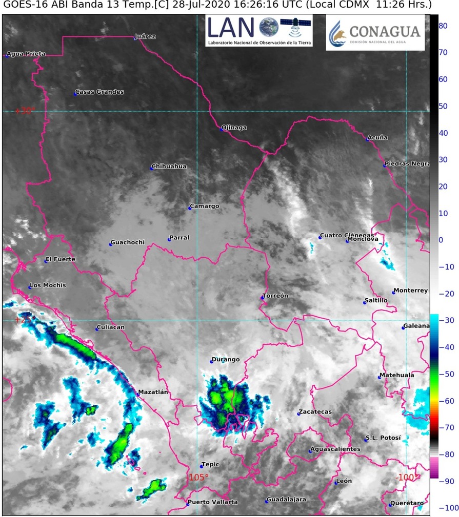 tarde, con lluvias intensas en Durango, Nuevo León, San Luis Potosí, Tamaulipas y
