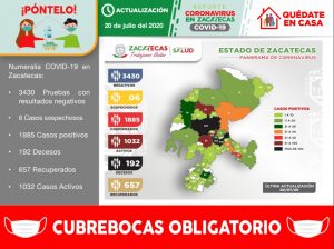 Gilberto Breña Cantú, titular de la Secretaría de Salud de Zacatecas (SSZ), informó que la paciente recuperada número 629 es una mujer de 44 años, residente de Fresnillo, quien fue atendida por el Instituto Mexicano del Seguro Social (IMSS), permaneció aislada y dio positivo el 15 de junio.