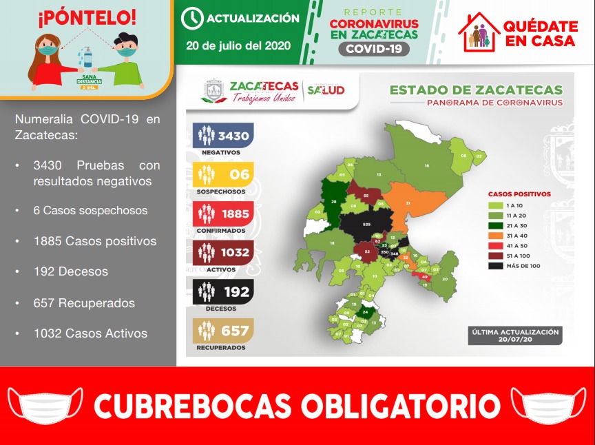 Se Recuperan 657 de COVID, Van 1885 Positivos y 192 Fallecidos