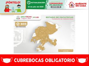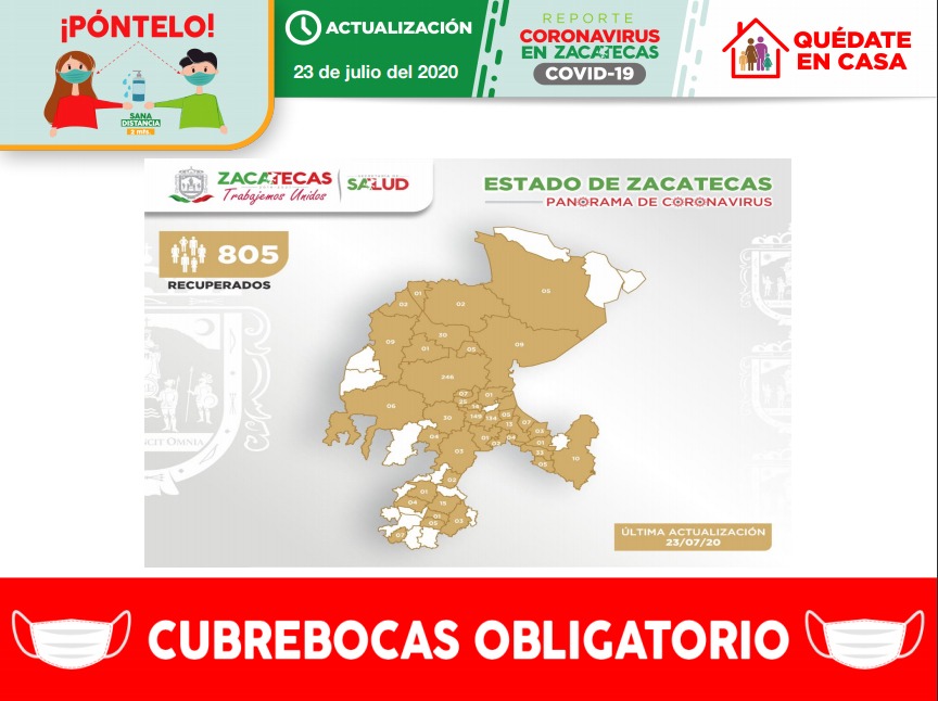 La Secretaría de Salud de Zacatecas (SSZ) registró, este jueves 23 de julio, a otros cinco pacientes recuperados clínicamente de Coronavirus (COVID-19), con los que suman 805 personas con el alta médica.
