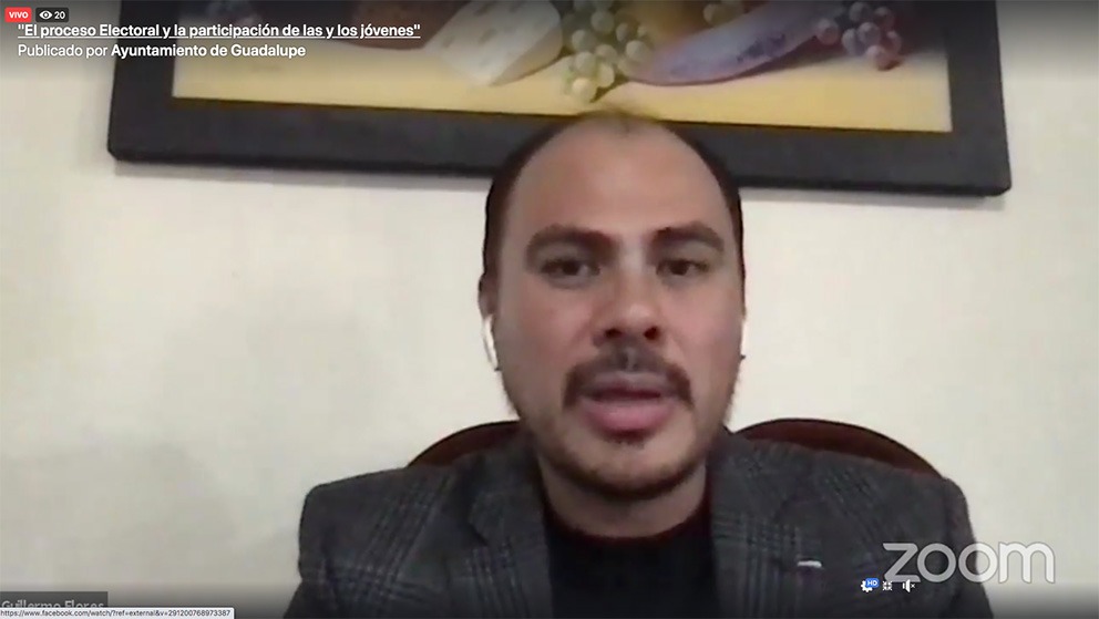 El próximo 7 de septiembre iniciará el Proceso Electoral 2020 – 2021 en el Estado de Zacatecas, en el cuál se elegirán 693 cargos, destacó la Dra. Adelaida Ávalos Acosta, Consejera Electoral durante la Conferencia virtual “El proceso electoral y la participación de las y los jóvenes”, que organizó el jueves por la tarde el Instituto de la Juventud en el Municipio de Guadalupe, con la colaboración del Instituto Electoral del Estado de Zacatecas.