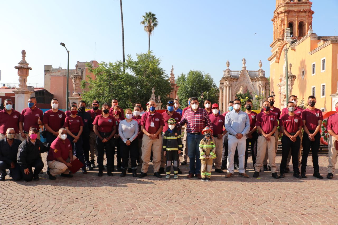 Fresnillo, Zac.- El Presidente Municipal, Saúl Monreal Ávila, ofreció un merecido homenaje al Heroico Cuerpo de Bomberos en su día, que desde hace 19 años se formó como departamento dentro del Ayuntamiento, y desde entonces salvaguardan la vida de las personas, en muchas ocasiones arriesgando su propia vida.